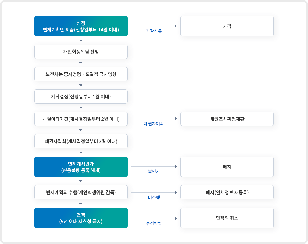 - 남은 채무는 줄이거나 면제받을 수 있습니다.