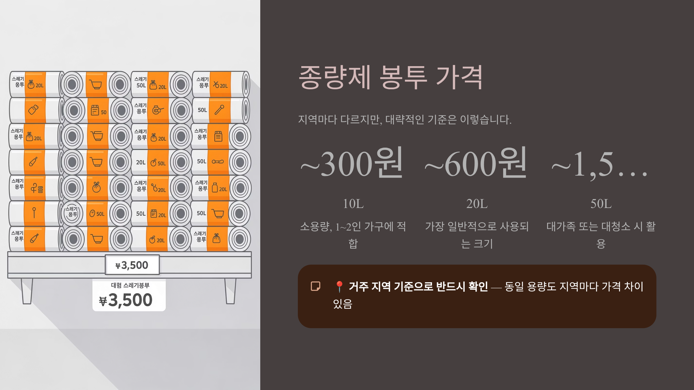 ## 💰 종량제 봉투 가격 (지역별 차이)