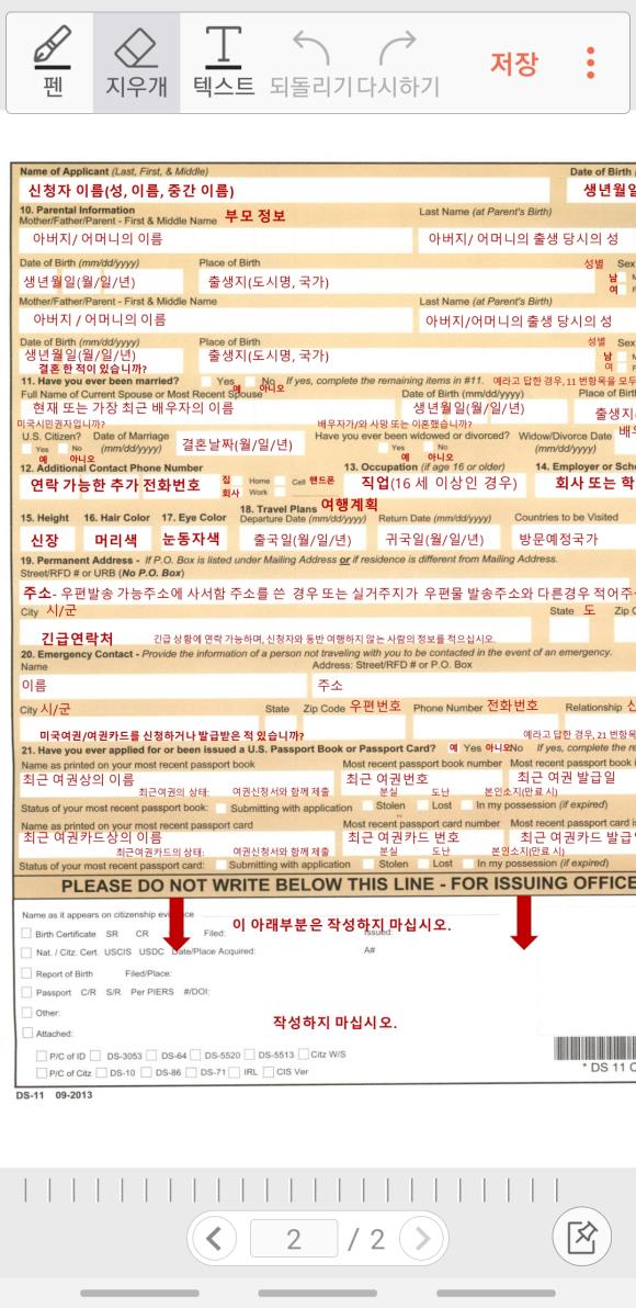 - 사증란(도장 찍는 페이지) 부족