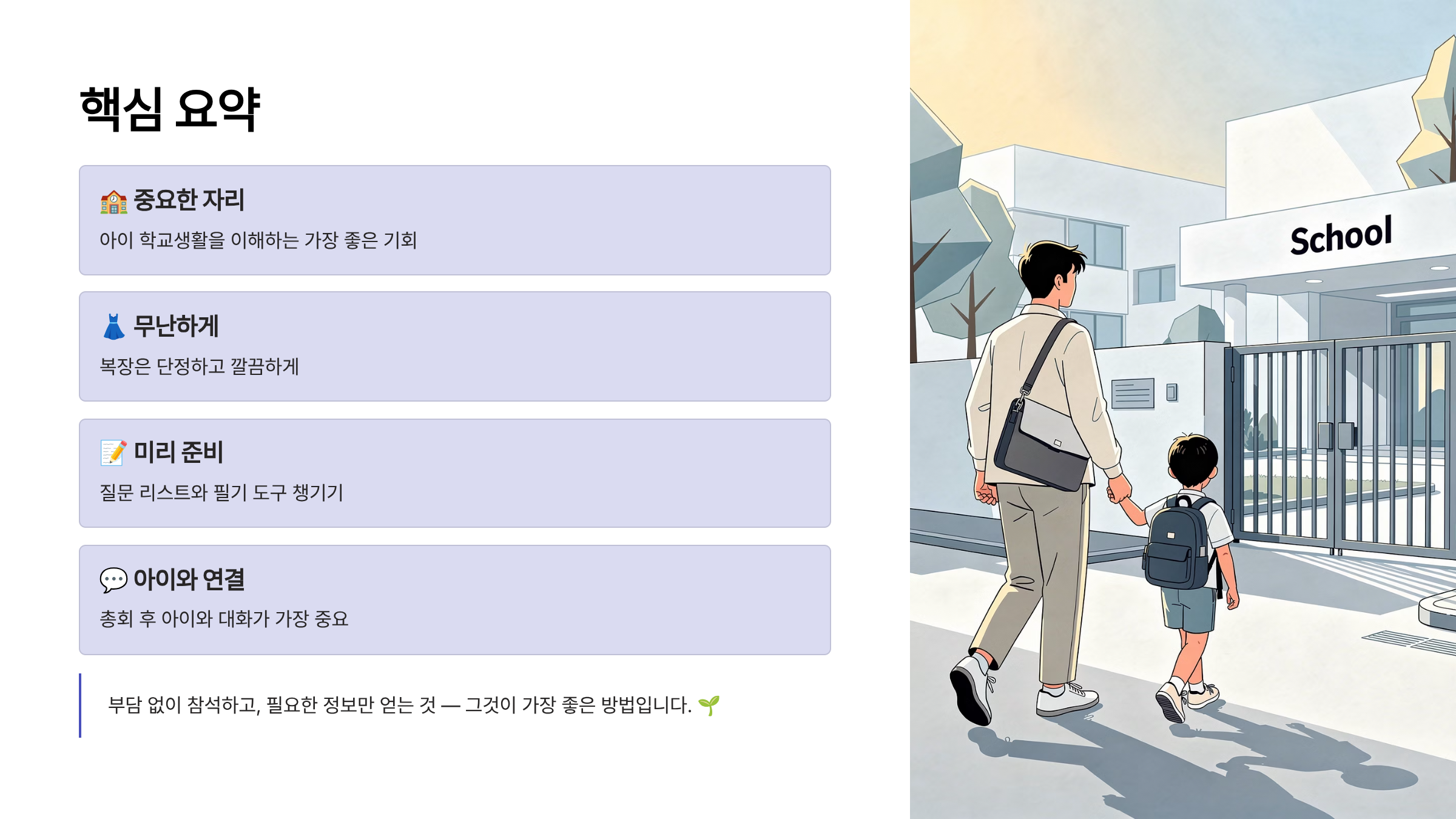 학부모총회는 아이 학교생활을 이해하는 중요한 자리로, 부담 없이 참석해 필요한 정보만 얻는 것이 가장 중요하다.
