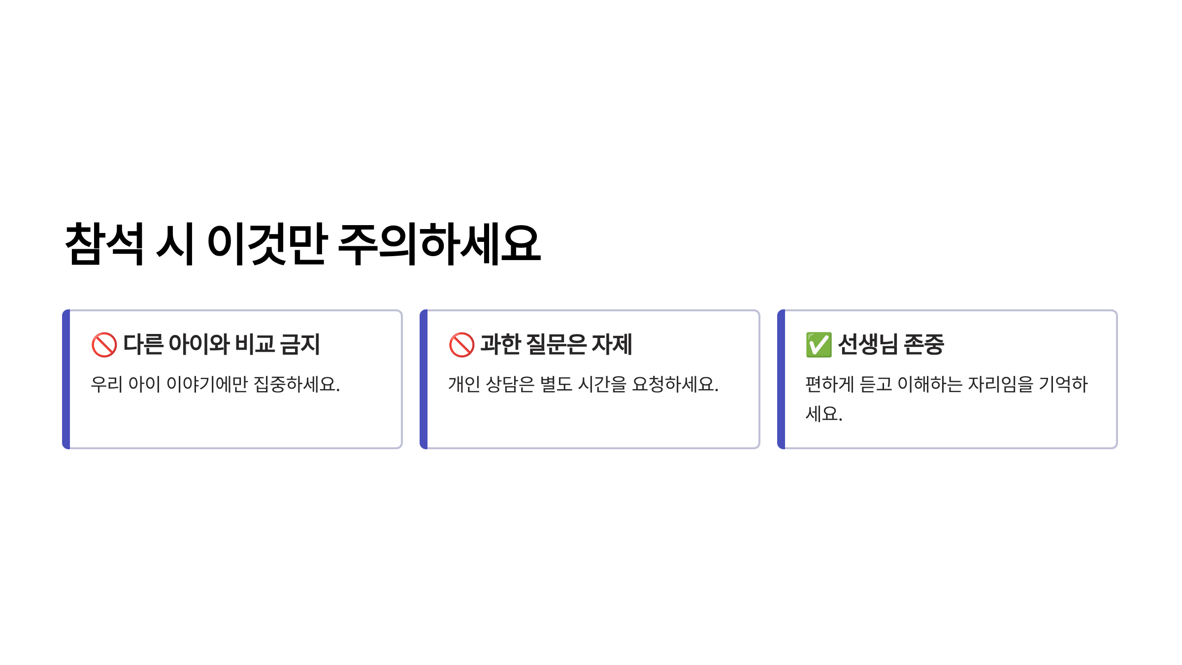 ✔️ 다른 학부모 비교 금지
